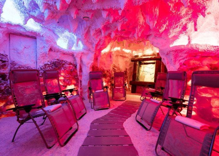 Wellnessbereich mit Damfbad, Finnischer Sauna, Jacuzzi und Fitnessraum.