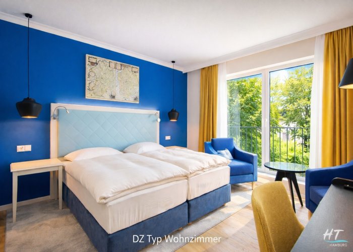 Doppelzimmer Wohnzimmer, 23-28m² inkl. Badezimmer befinden sich im neuen Teil des Hauses (auf der anderen Straßenseite) und verfügen über King-Size Boxspringbett mit 2 Superlux-Taschenfederkernmatratzen, Schreibtisch mit Stuhl, 2 Komfortsessel, 10“ LCD-Fernseher, inkl. Highspeed WLAN, inkl. Sky HD TV, Multimedia USB-Steckdosen am Bett, Telefon( frei ins Fest/Mobilfunknetz), Leseleuchten am Bett, Laptop-Safe mit integrierter Steckdose, geräumiger Schrank, teilw. ebenerdige XXL 160cm Dusche, Kosmetikspiegel und Fön.