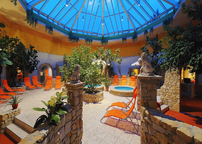 In der 4500 m² großen Wellness-Oase, die zwischen den beiden Häusern 1 und 2 liegt, erwarten Sie Hallenbad, Liegewiese, Saunabereich, Ligurischer Garten, u.v.m. Zum Sportangebot gehören Kegelbahnen, Sporthalle mit Beachvolleyball, Tennisplatz und Beachbadmintonplatz, Tischtennis und Minigolfanlage. Die Nutzung des WLANs ist im Lobbybereich im Reisepreis inkludiert.