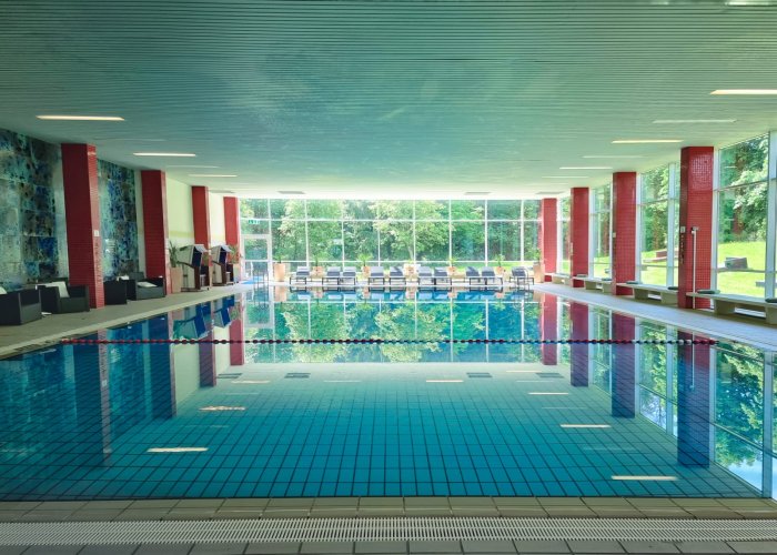 Das Hotel bietet Rezeption, Restaurant, Bar, Billard, W-LAN in den öffentlichen Bereichen, Lesezimmer, Hallenbad und (g. Gebühr) Finnische Sauna.