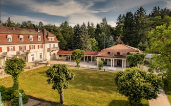 Mit warmen Farben und hochwertiger Ausstattung eingerichtet, bietet es ein stilvolles Ambiente. Sie finden hier ein stilvolles Restaurant mit Parkterrasse, Bistro, VIP-Lounge, Bibliothek, Musikzimmer und einen Kiosk. Es gibt einen Bademantelgang direkt vom Zimmer in das Radon-Therapiezentrum mit Bade- und Saunalandschaft Bad Brambach.