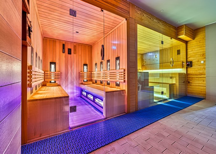 Hallenbad, einen kleinen Außenpool, einen Whirlpool, ein Dampfbad und eine Sauna. In diesem Bereich des Hotels werden Behandlungen wie z. B. Wasserbäder, Fangopackungen, Wassergymnastik und weitere Kur- und Wellnessbehandlungen angeboten (ggf. gegen Gebühr). Zudem können Sie sich im Fitnessraum auspowern.