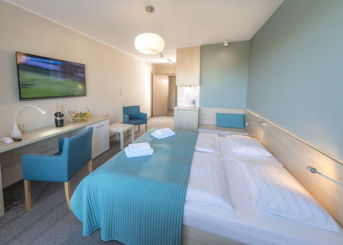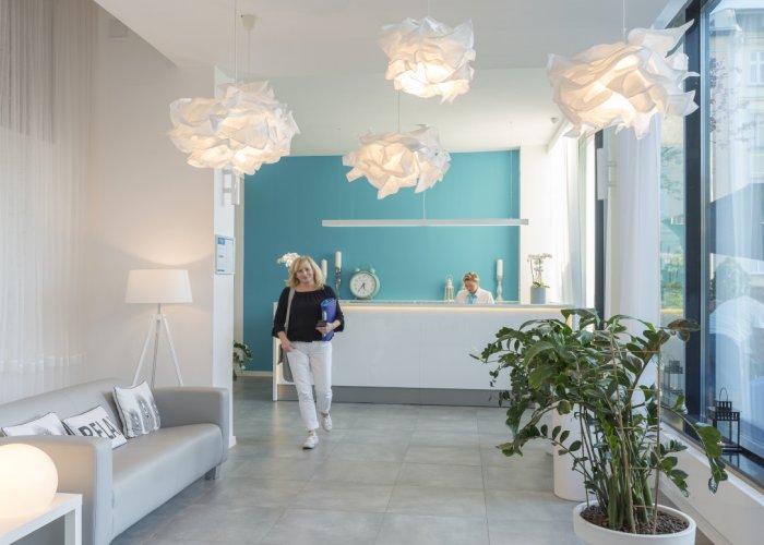 Das geschmackvoll eingerichtete Hotel verfügt über ein Restaurant, eine Bar und eine Spielecke für Kinder. Der Wellness- und Kurbereich bietet Ihnen ein Hallenbad, Finnische Sauna, Fitnessraum, Whirlpool, einen Beauty-Salon und eine Salzgrotte.
