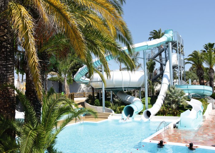 Riesige Poolanlage mit diversen Wasserrutschen