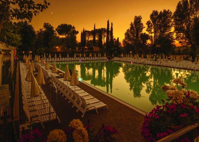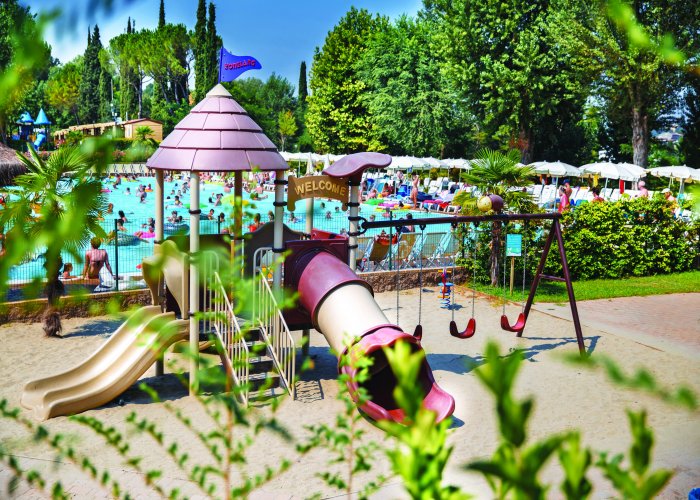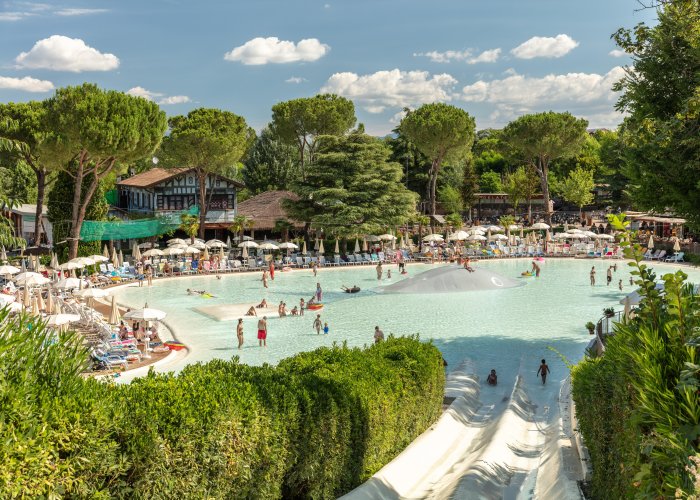 Wer sich nicht so sehr für Pools begeistert, kann an Land eine Runde Tennis oder Minigolf spielen oder den Kindern beim Spielen auf dem Spielplatz zusehen. Sportliche Wettkämpfe werden auf dem Basketball-Platz ausgetragen. Eltern werden die Tatsache zu schätzen wissen, dass das Gelände des Campingplatzes in einer reizvollen Terrassenlage liegt und vollständig autofrei ist. So können sich Ihre Kinder bedenkenlos mit ihren Freunden im Freien austoben, während Sie in einem der Restaurants einen leckeren Cappuccino genießen.