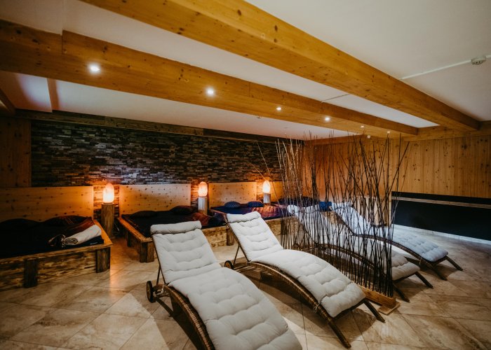 Herzstück des Hauses ist der rund 700 m² große Wellnessbereich. Dieser umfasst eine Schwimmgrotte (ca. 28 m²), verschiedene Saunen – darunter Finnische Sauna und Zirbensauna – ein Tepidarium, eine Infrarotkabine sowie großzügige Ruhezonen. Saunatücher und Leihbademäntel stehen zur Verfügung.