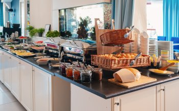 Der Tag beginnt mit einem reichhaltigen Frühstücksbuffet, das sowohl warme als auch kalte Speisen umfasst. Frische Backwaren, Aufschnitt, Käse, Eierspeisen sowie Heißgetränke sorgen für einen ausgewogenen Start in den Tag.
